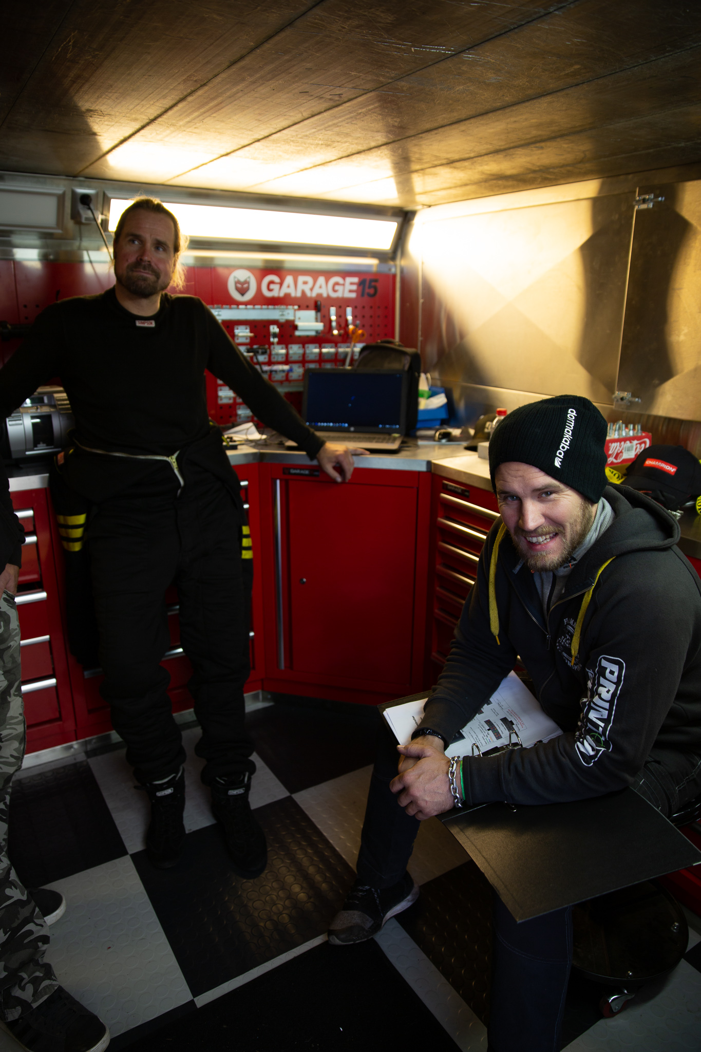 desverre ikke anledning til å alltid være med teamet på banen. Dette er løst gjennom moderne kommunikasjonsutstyr, og det er svært imponerende og se hvordan "Høken" chief mechanic flyr rundt med mobilen overalt. For de uinnvidde kan det se ut som han er en nyforelsket tenåring som løper rundt med mobilen limt til øret. Dette er ikke tilfellet, han har derimot tett kommunikasjon med Anders Nilson per telefon, som i sin tur sender nye datafiler til motoren via mail.