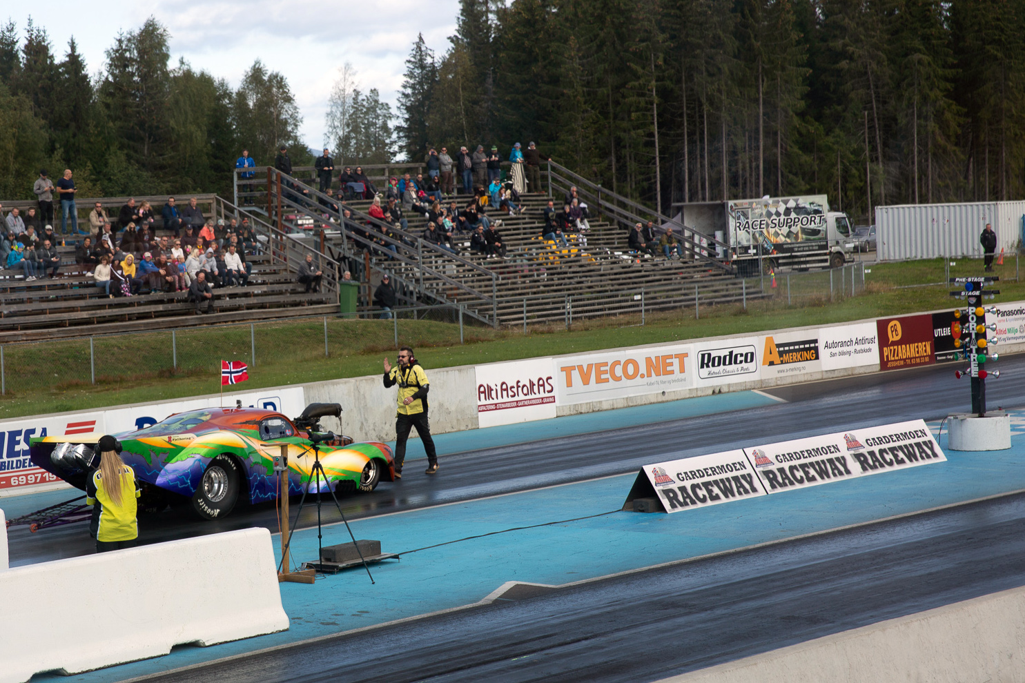 Stian svarer derfor litt forsiktig "Pro Mod? Ekke det jævlig dyrt a?" Hvor på Erik responderer at "Joa litt koster det jo, men.. morro da." Gutta ble sittende på tribunen og nyte verdens raskeste motorsport resten av dagen, før kvelden kom og de skilte lag for denne gang.